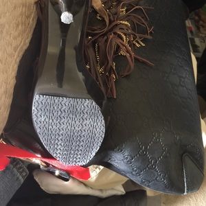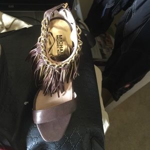 How much for the chain ankle strap shoes and the white and tan shoes and size please.