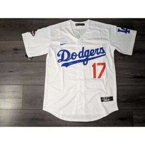 Brand new with tags! Shohei Ohtani #17 Los Angeles Dodgers White 2024 World Series Kanji Jersey Men's adult size Medium - 40 - 19.5" across the chest from armpit to armpit Super High Quality - All Stitched and embroidered! As pictured and in hand for quick shipping!