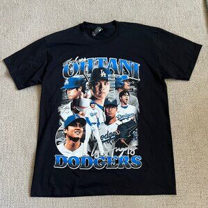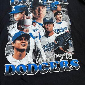 Shohei Ohtani Rap Tee Retro T Shirt Sz L Black Dodgers Collage Big Graphic NEW
