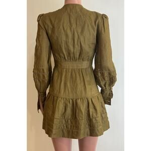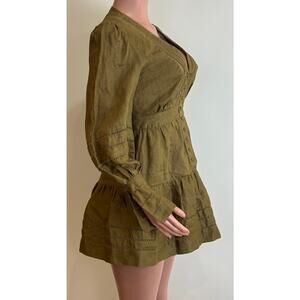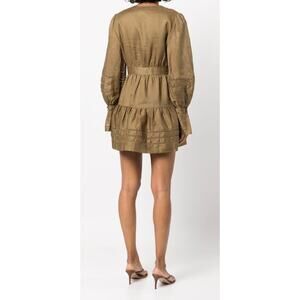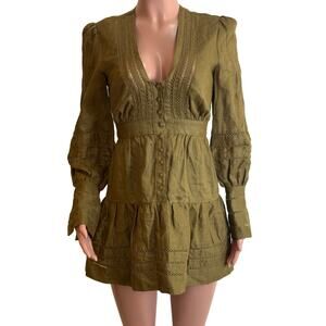 Shona Joy Benedetta Plunged Mini Dress Womens 2 Bayleaf Brown Linen Fit & Flare
