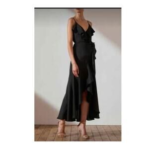 Shona Joy Black Luxe Bias Frill Wrap MIDI Dress sz 4. Gently used condition no flaws. Fully lined, and adjustable straps.