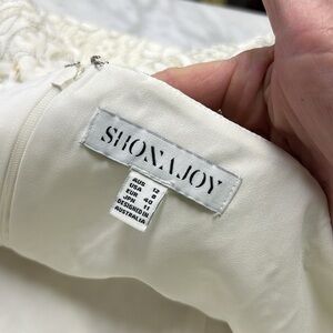 Shona Joy Cream Lace Handkerchief Hemline Midi Length Sleeveless Dress Size US8