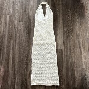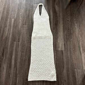 Shona Joy Emilio Ivory Crochet Halter Maxi Dress Small Open Back Resort Beach
