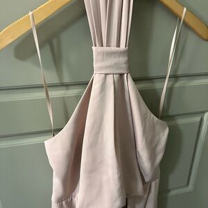 Step out in style with this elegant blust pink halter dress. Perfect for any occasion, this dress offers a sophisticated look with its unique design. Sold on Revolve retailing $380. US size 4 MC.8