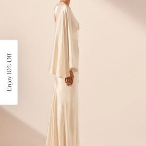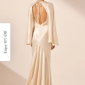 Backless maxi dress in cream in a LENZING™ ECOVERO™ with luxurious satin finish.