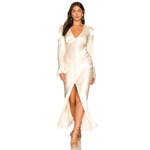 Shona Joy La Lune Frill Cuff Bias Midi Dress Formal Elegant Wedding Cream Size 8
