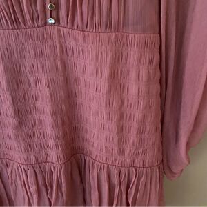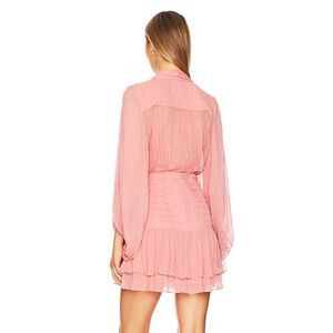 Shona Joy Lauren Button Up Ruched Mini Dress Blush pink peasant sleeve Revolve