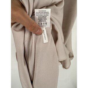 This was a Nordstrom rack wholesale piece. It is technically new without tag however it had a ripped inner seam at the inner cowl neck area on the side. I fully repaired the seam and it’s not visible through the outside. There are some areas with some with a single thread looping. I’ll have photos above to show the textural differences. The full length is approximate and it is 59”.