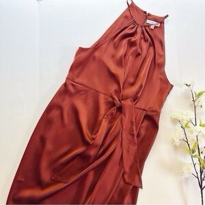 Shona Joy Luxe Tie Front Sleeveless Midi Sangria Halter Dress Midi