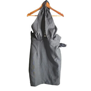 Shona Joy Morgan Crossover Wrap Mini Dress in Black. Size 10. Features crisscross halter neck with back tie closure, sleeveless, attached draped fabric overlay with tie closure, hidden back zipper closure, and mini length. Style 224002. Shell: 55% Linen, 45% Viscose. Lining: 100% Cotton. NWT / New with tags.