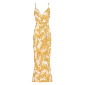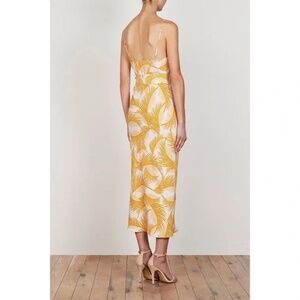 Shona Joy Phoenix Midi Slip Dress in Yellow/ Stone Belted Feather Print Size 6