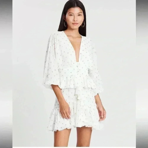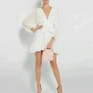 Shona Joy Sophia Dot Print Plunged V-Neck Ruffle Mini Peplum Dress SZ 4