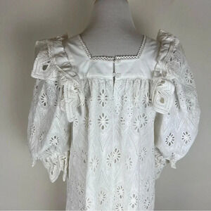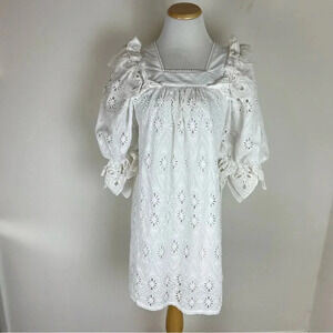 Shona Joy Viola Mini Dress White Eyelet Lace Puff Sleeve Ruffle Size 6