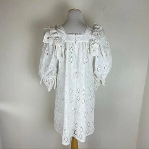 Shona Joy White Eyelet Lace Puff Sleeve Ruffle Mini Dress Size 6
