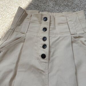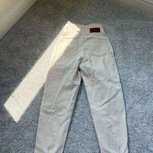 Edgy and sophisticated. High waist button up pants. Made of high quality cream denim. Fits snug, better for size zeros.