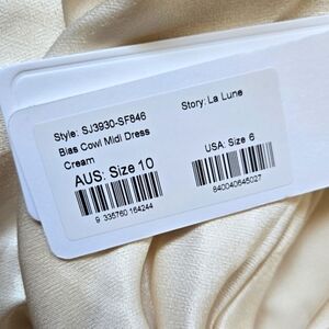 Shona Joy la lune bias cowl Neck midi dress NWT In Cream Size 6