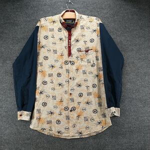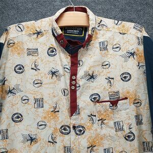 Shooter Western Men's Button-Up Shirt Multi XL Long Sleeve London Stamps Planes