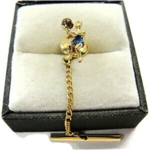 This Unbranded shooting basketball player tie tack is a vintage piece, featuring gold-tone enamel on metal. Perfect for adding a sporty touch to tuxedos and suits.