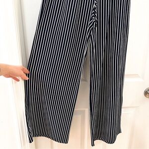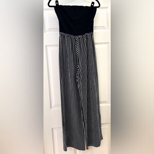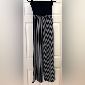 Shop 17 Strapless Wide leg Jumpsuit Striped Navy Blue White. Size small (no size label), but I wear a small and it fits me perfectly. Excellent condition, worn once briefly for photos. Stretchy soft cotton blend top with elastic band. Elastic waist. Unlined.
