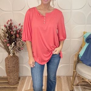 Fushia Shop Basic Top. Polyester/rayon/spandex. Very soft and has some stretch. NWOT