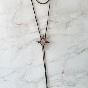 ✨Shop Dixi Three Layered Necklace Gunmetal Gray with Pink Stone Center✨