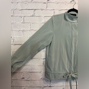 Crafted from a high-quality blend of fabrics, this like-new jacket features a trendy gray green color, making it perfect for any occasion.