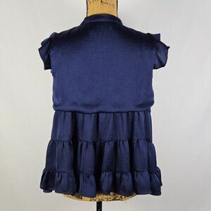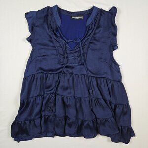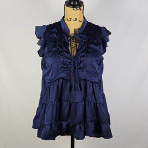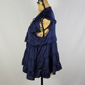 Shop Neighbor Navy Blue Ruffle Tiered Blouse Womens L Satin Boho Festival Top