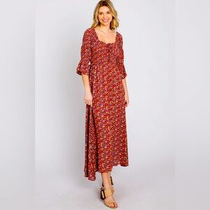 Shop Neighbor- Red Floral Smocked 3/4 Sleeve Maxi Dress. Size M