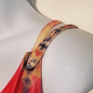 Stylish tie-dye jumpsuit featuring vibrant red and black colors. Adjustable straps, removable belt, elastic waist. New with tags. Please see pictures for details and let me know if you have any questions I ship the next business day