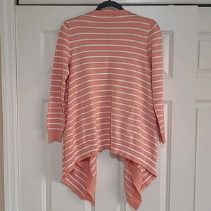 Shop Ruche Coral & White Waterfall Draped Open Front Cardigan - Size L