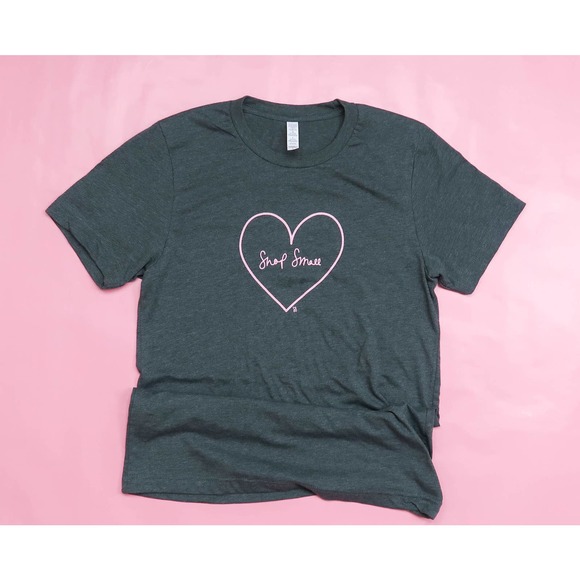 Shop small today, tomorrow, and always. This tee is professionally screen printed by shaef. It fits true to size and Shaef is wearing her normal size, a small! This green and pink combo is our favorite combo right now!