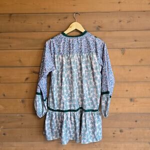 Shop The Mint Abigail Tunic Babydoll Dress Small Floral Boho Prairie Velvet Trim