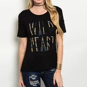 Shop The Trends Wild Heart Boho Black Short Sleeve Tee Medium