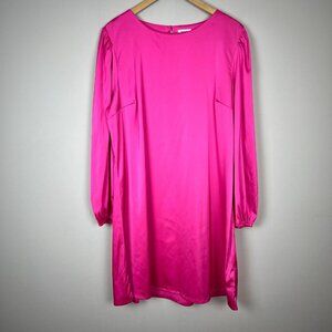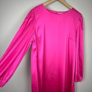 ShopDandy The Drop Dress Womens XXL Pink Satin Long Bishop Sleeve Belted Sleeve
