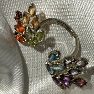 ShopLC Multi Gemstone Cluster Rainbow Open Band Sterling Silver Ring sz-5