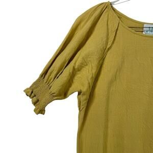 ShopTheMint Women M Yellow Boho Smocked Short Sleeve Linen Blouse Fall Layering