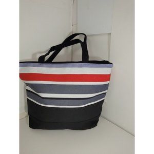 Shoppers Tote Bag Stripe Multicolor Black Red Shoulder BEACH Bag - Stylish