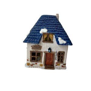 This porcelain lighted house from the Shops of Dickens' Village collection embodies charm and nostalgia. Its delicate snowy roof and intricate detailing transport one to a quaint Dickensian winter scene. Perfect for seasonal displays or collectors, this piece offers both decorative and functional warmth with its included light.