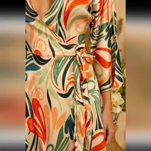 Beautiful satin appearance. Shiny and gorgeous. Perfect dress for a summer wedding, garden party or an evening out.