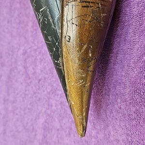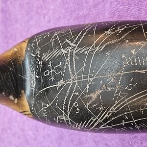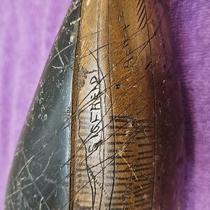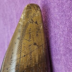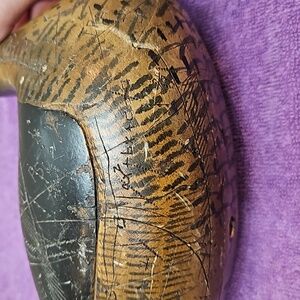 I am not really sure what this thing is.The only decoys I found like it were at the Shelbourne Museum. Honestly we find all manner of weird and odd old things. It appears to be a shore bird decoy. It is etched all over with symbols, names, lines, patterns,and parts of math equations. So I assume it's a list of people in a club or fraternity associated with PSU 61. Some of the names or words include :