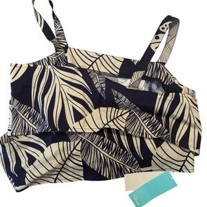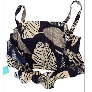 Shore Linen Blend Tropical Print Wrap Top NWT