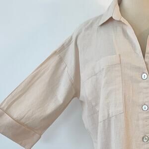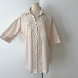Shore Oversized Linen Shirt Mini Dress Button-Down Seashell Size XS NWT