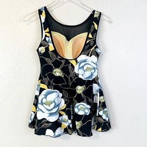 Shore Shape Black Floral One Piece Swim Dress Size 10