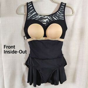 Shore Shapes Black White Swimdress Shelf Bra Tummy Control Womens 12 Large