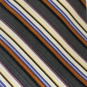 Add a touch of timeless style with this Shore & Singer handmade silk necktie featuring classic multicolor diagonal stripes. The standout palette includes shades of gray, rust, and cream, making it versatile for both vintage and modern wardrobes. The “Shore & Singer Since 1937” tag speaks to the brand’s heritage of quality craftsmanship. Made of 100% silk with a soft hand and rich color.