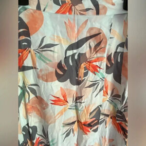 Beautiful Resortwear brand Shore. Gorgeous wrap skirt in glowing rayon fabric with light blue background and tropical print. Wrap gives a high low effect. Beautiful condition. Sz Medium