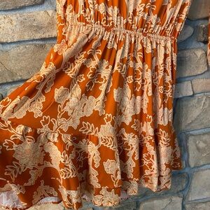 Shore Women’s Floral Short Dress Orange Gold Peep Hole Summer New Medium Resort