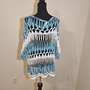 Shoreline Asymmetrical Blue and White Crochet Dress Or Top