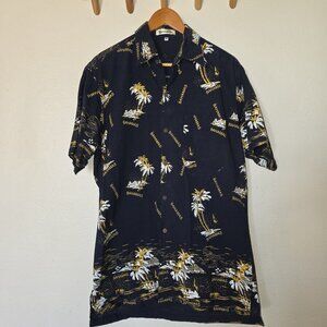 Shoreline Bahamas Shirt Men’s M Blue Hawaiian Button Up 100% Cotton Palm Trees