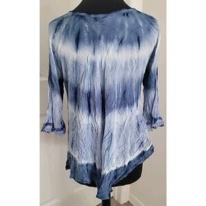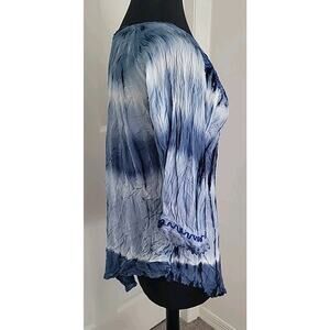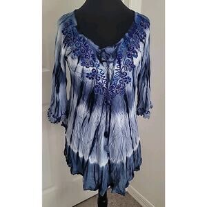 Shoreline Blue Tie-dye Tunic Top 1XL Embroidered Gauzy Crinkle Boho Gypsy